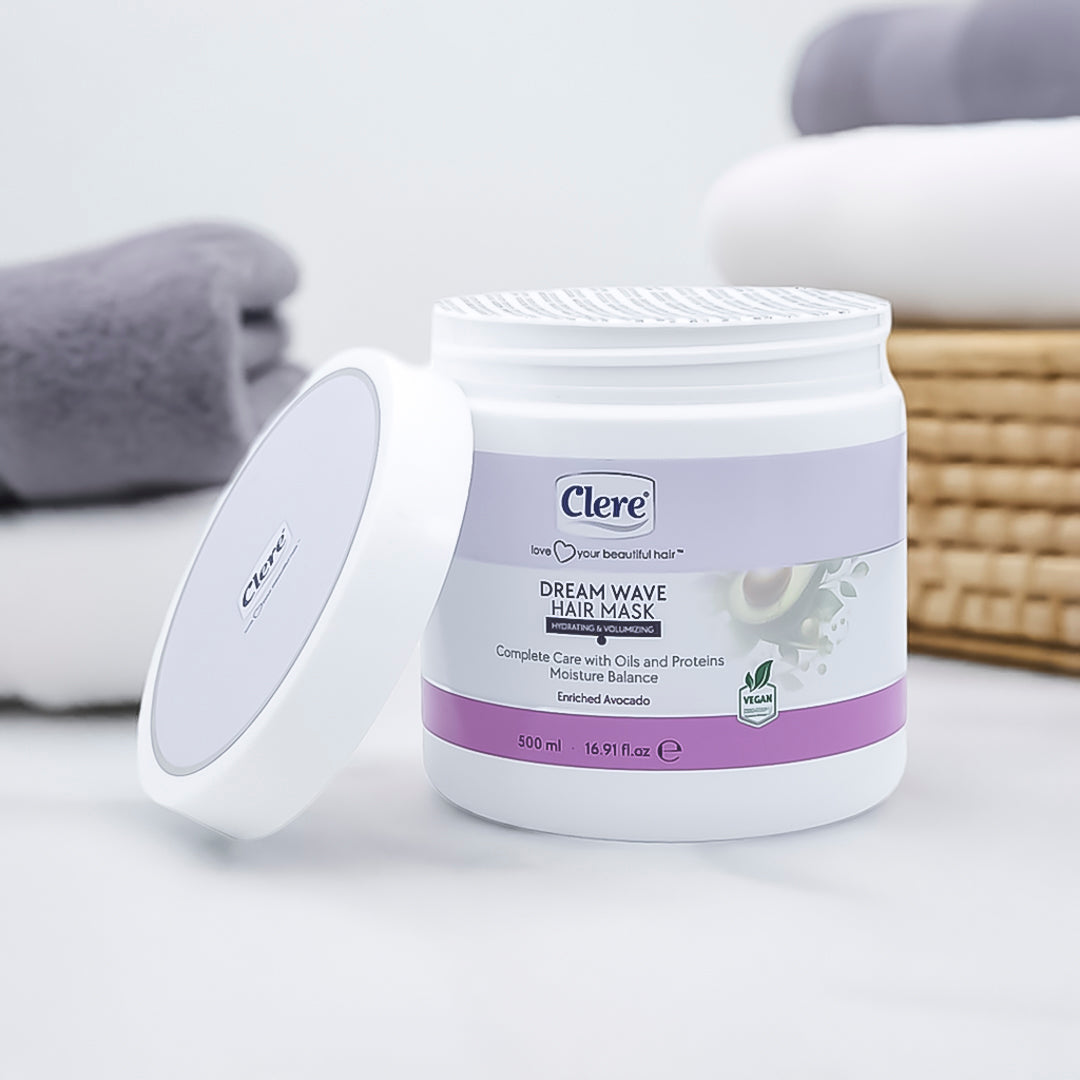 Clere Dream Wave Haarmaske, 500 ml – Angereichert mit Avocado-Öl, Hydratisierend und Volumenverleihend, Paraben- und Silikonfrei, Vegan