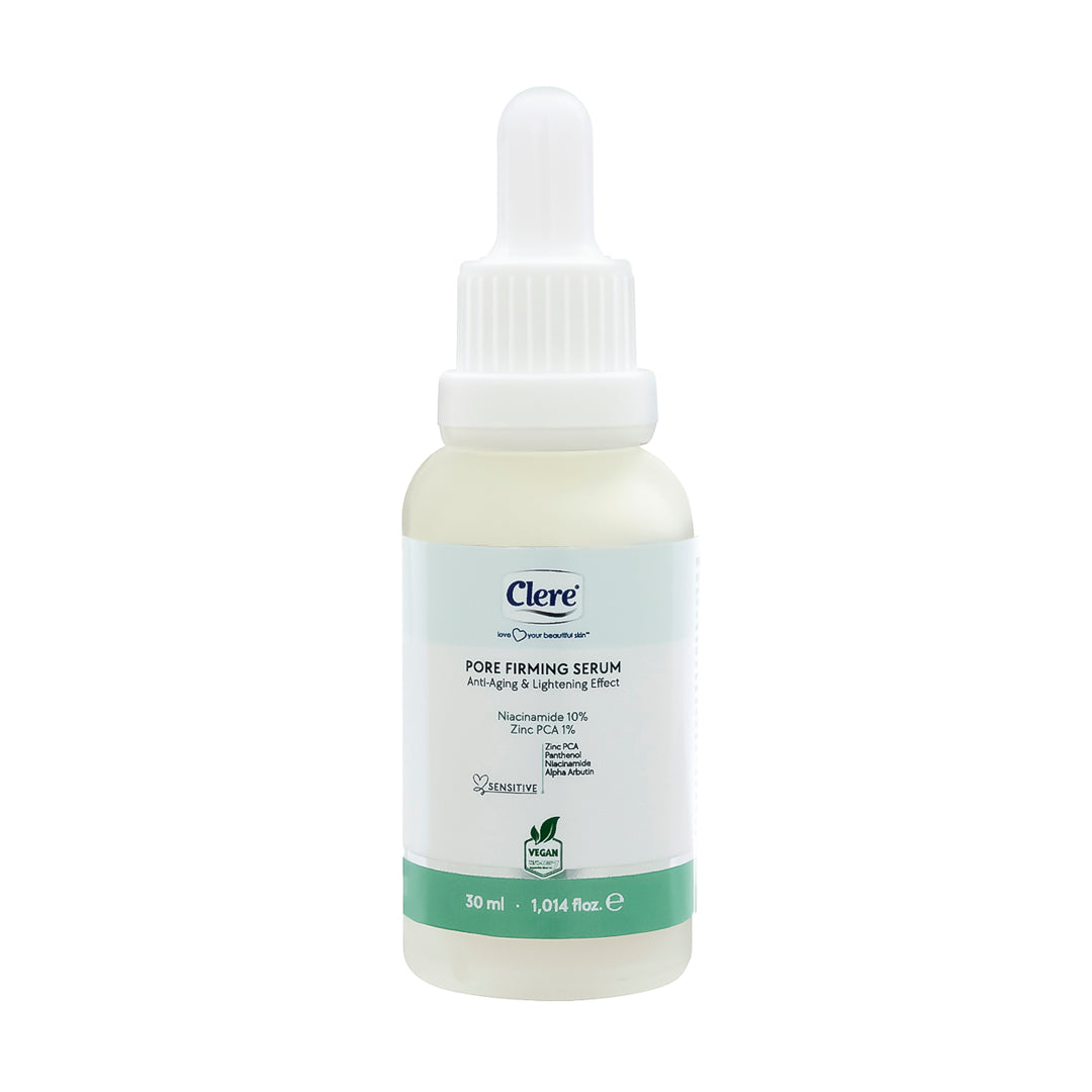 Clere Pore Firming Serum, Anti-Aging & Porenverfeinerung, Niacinamid 10%, Zink PCA, für alle Hauttypen, 30ml, Vegan, Ohne Parabene, Silikone und Duftstoffe