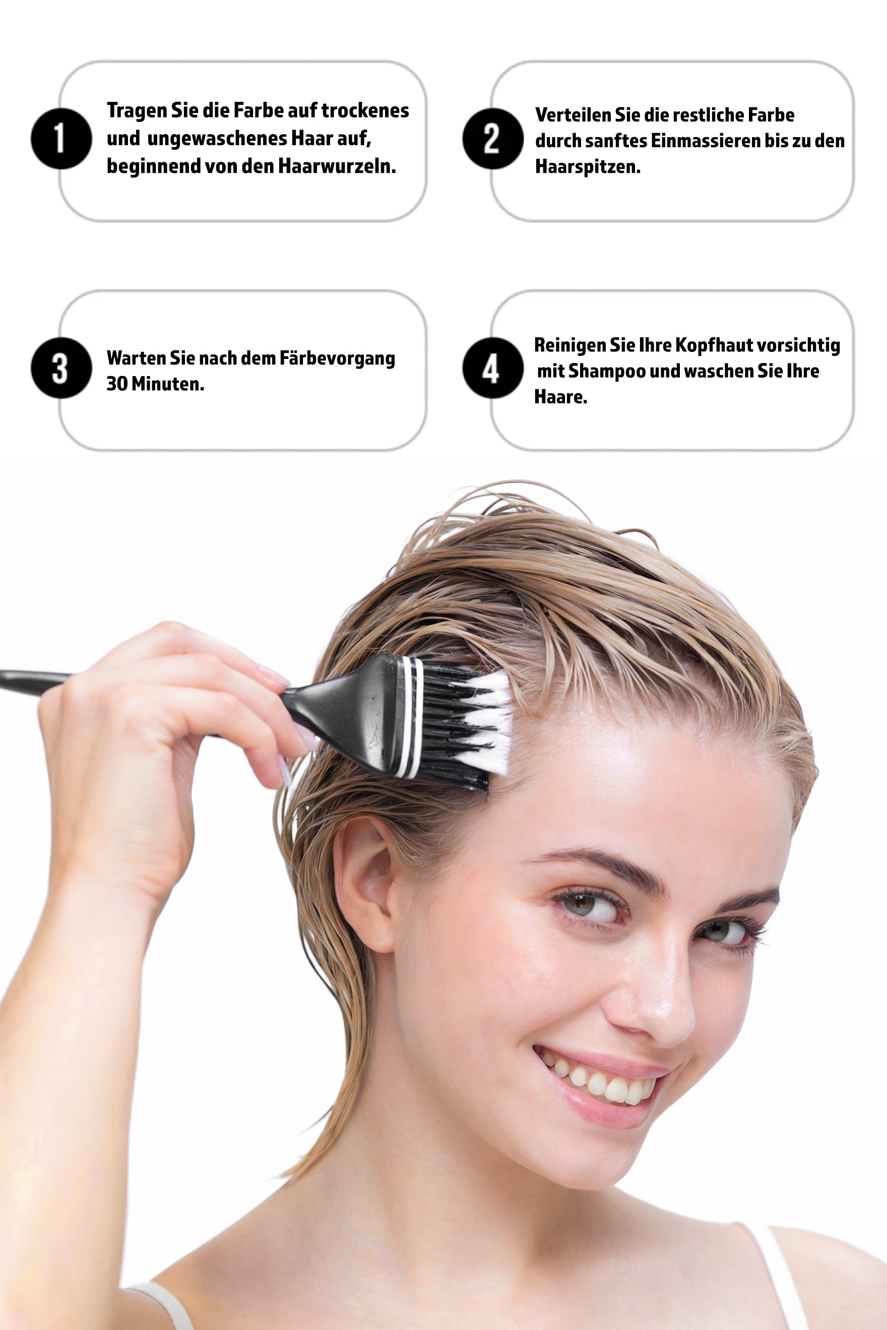 - Lang anhaltende Farbe: Bleibt bis zu 6–12 Haarwäschen erhalten.